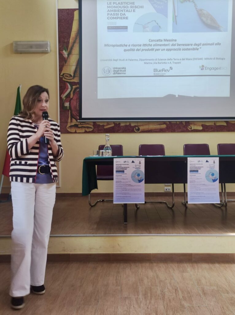 La parte scientifica è stata approfondita grazie all’intervento di Concetta Messina, docente dell’Università degli studi di Palermo, Dipartimento Scienze della Terra e del Mare e dell’Istituto di Biologia Marina del Consorzio Universitario di Trapani. La professoressa Messina ha illustrato la ricerca scientifica che conduce attraverso i progetti “BlueRev” e “Engage4Bio” per promuovere la bioeconomia blu regionale e l’utilizzo delle risorse marine. È stata evidenziata l’importanza di un consumo consapevole e sostenibile dei prodotti ittici e come le microplastiche interagiscono con gli organismi marini e il rischio che possano essere trasferite all’uomo.