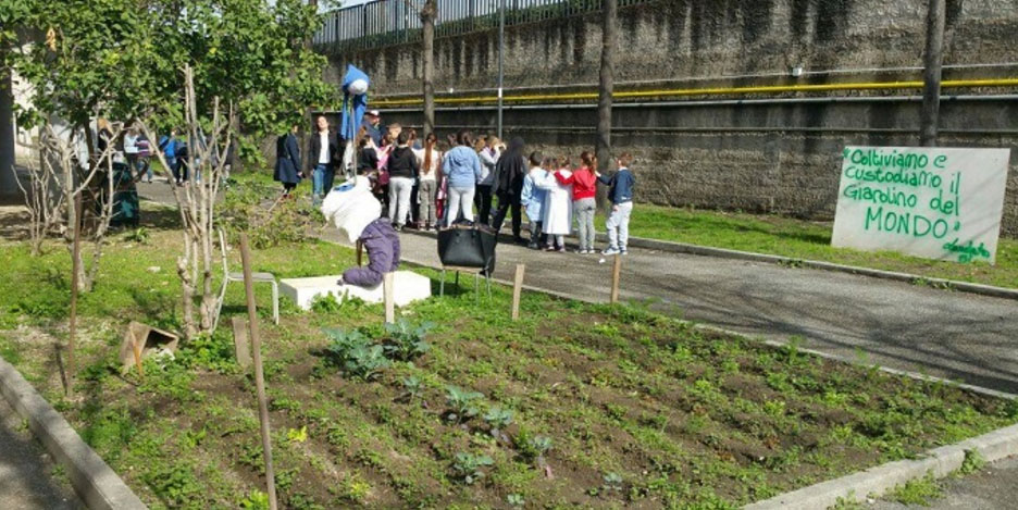 L’Istituto ha già creato, in un una porzione del suo giardino, un piccolo orto didattico che verrà curato direttamente dai bambini. Grazie alla collaborazione della regione Campania, con il suo vivaio Le Tore di Sorrento, e la ditta specializzata del comune di Portici, sono state piantumate nelle aree a verde della scuola numerose specie di piante, dagli alberi di ulivo ad altri arbusti che diventeranno una siepe di protezione del campetto esterno della scuola.