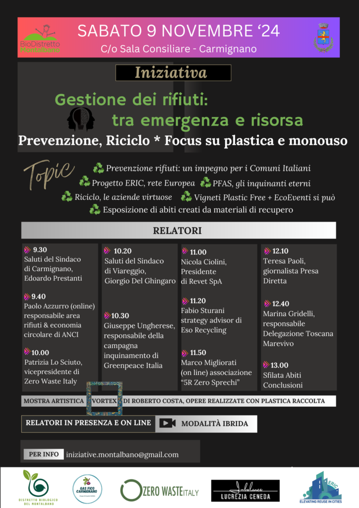 L’iniziativa nasce dal progetto ERIC di Zero Waste Europe a cui i Comuni di Carmignano e Viareggio partecipano come opportunità di confronto, crescita e innovazione in merito al riuso.