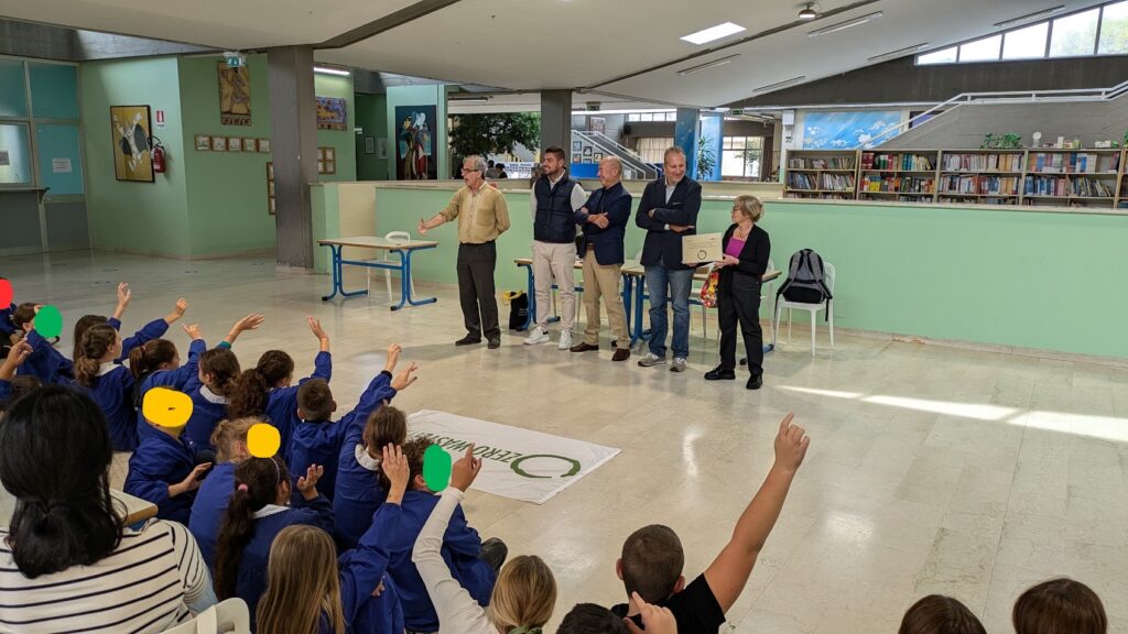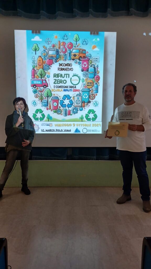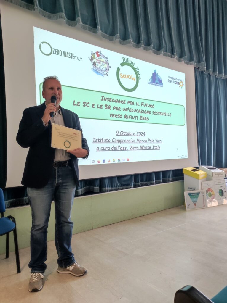 A premiare la scuola è stato il presidente di Zero Waste Italy, Rossano Ercolini, insieme agli attivisti locali Daniele Stefani e Claudine Giacomelli.