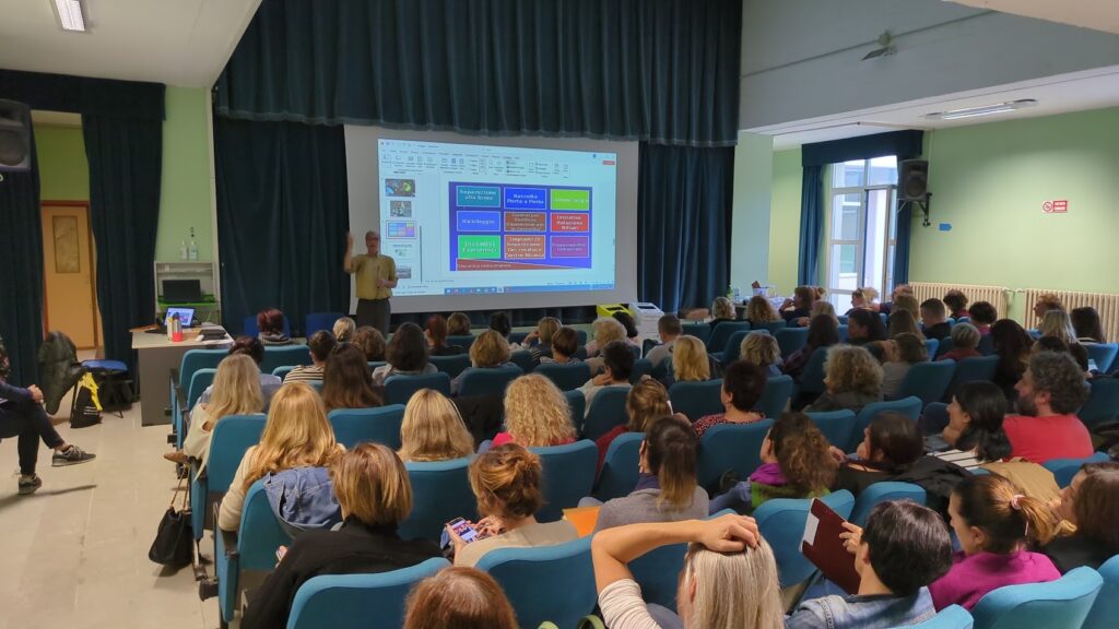 Nel pomeriggio, prima formazione rivolta al personale della scuola, l’intero collegio docenti si è riunito per un incontro di formazione specifica sul tema della prevenzione e corretta gestione-conferimento dei rifiuti.