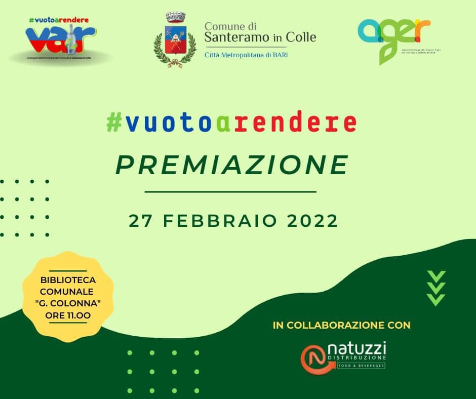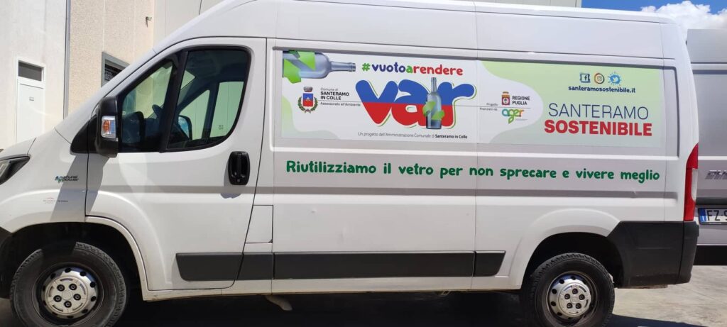 Progetto VAR “Vuoto A Rendere” promosso dall’Amministrazione Comunale di Sant’Eramo in Colle (Bari), finanziato dalla Regione Puglia e Ager (Agenzia Territoriale della Regione Puglia per il servizio di gestione dei rifiuti) e realizzato in collaborazione con Natuzzi Distribuzione food & beverage.