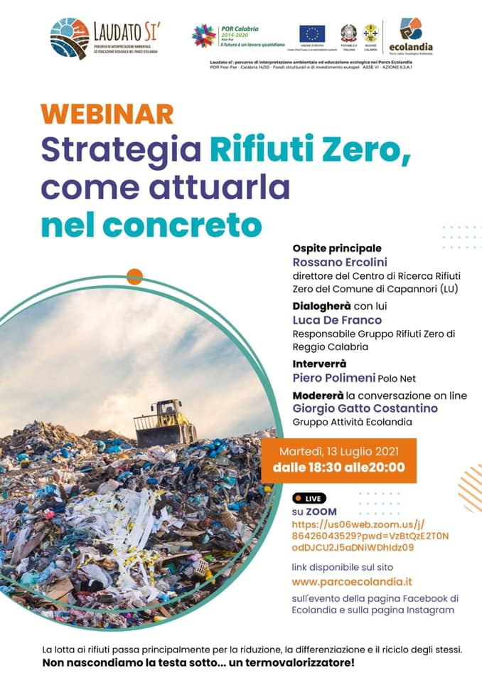 13 luglio • Webinar “La strategia Rifiuti Zero, come attuarla nel concreto” ore 18:30. Diretta FB su Parco Ecolandia.