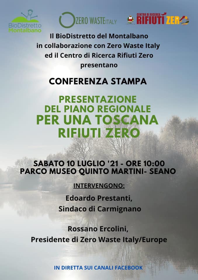 10 luglio • Seano (PO), conferenza stampa di presentazione del piano regionale per una Toscana a Rifiuti Zero. Ore 10 Parco Museo Quinto Martini.