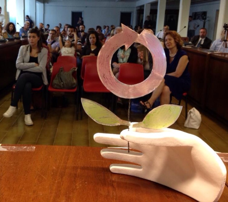 Una volta richiamati da Rossano Ercolini gli obiettivi del Giro, che si è articolato in un mese intero di eventi, coinvolgendo migliaia di persone, si è passati alla premiazione. Il premio, costituito da una statuetta realizzata con materiale riciclato dall’artista Stefania Brandinelli, è stato consegnato ai rappresentanti ufficiali delle imprese dopo aver enunciato le motivazioni oltre che dai membri del comitato di valutazione nazionale composto da Patrizia Lo Sciuto, Patrizia Pappalardo, Enzo Favoino, Franco Matrone e Rossano Ercolini, anche dal neo Sindaco del Comune di Capannori Luca Menesini, dal giovanissimo assessore all’ambiente Matteo Francesconi e da Concetta Mattia in rappresentanza di Anpas Nazionale.