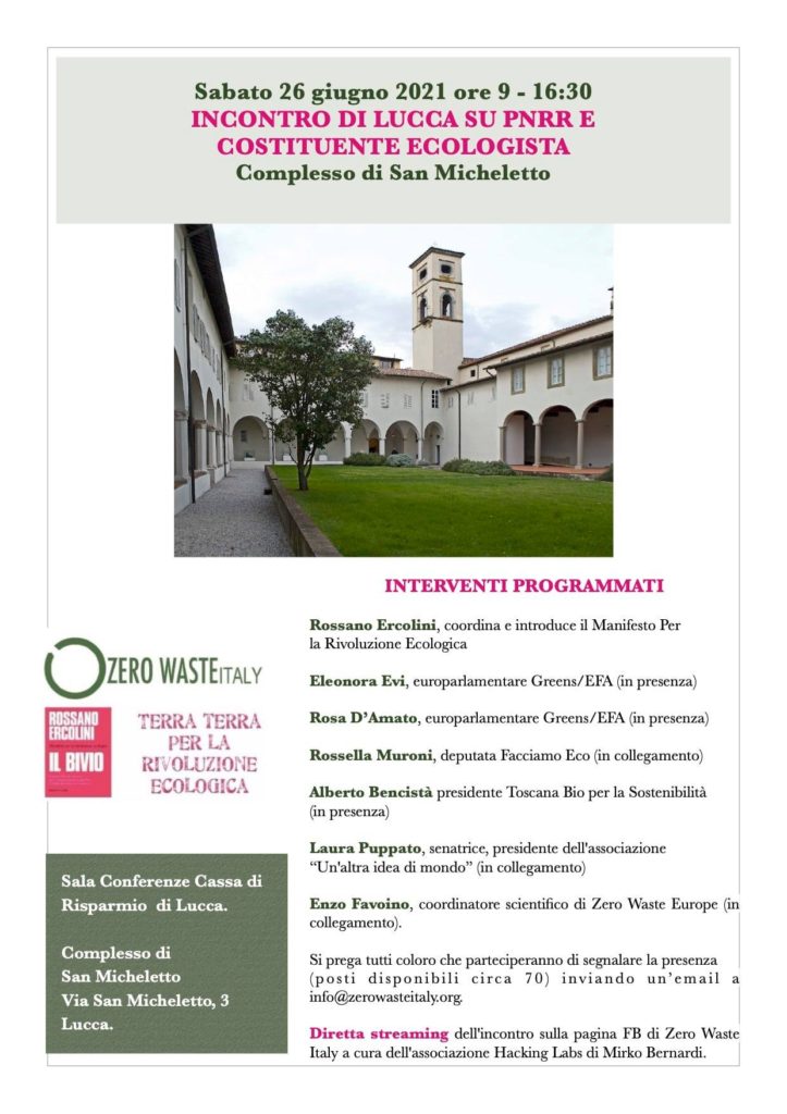 Diretta streaming dell’incontro sulla pagina FB di Zero Waste Italy a cura dell’ Associazione hacking labs di Mirko Bernardi.